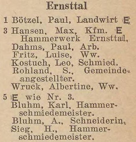 Mieszkańcy posiadłości w roku (Ernstthal 1-3):