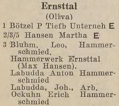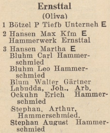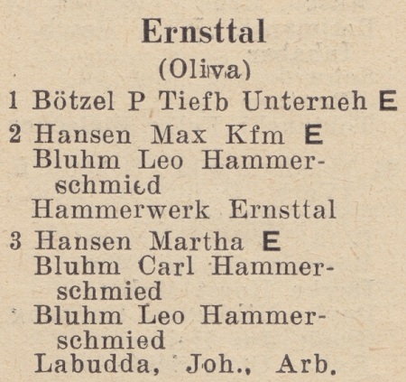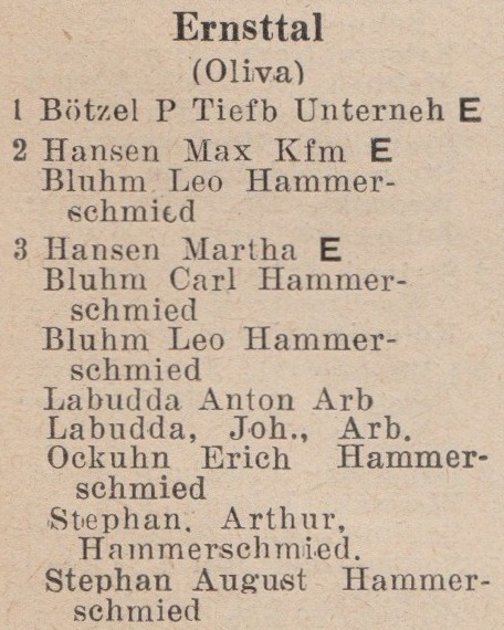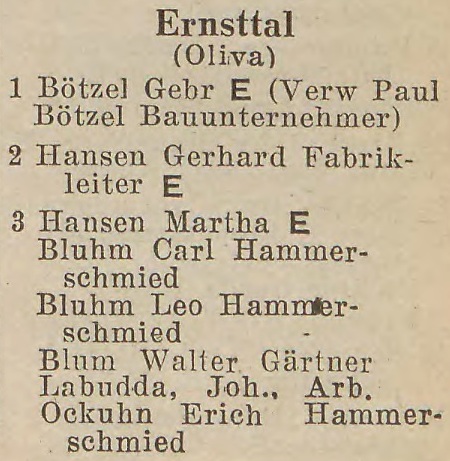 Bötzel. Hansen. Książka adresowa gminy Oliwa z 1925 roku. Zbiory Pomorskiej Biblioteki Cyfrowej.