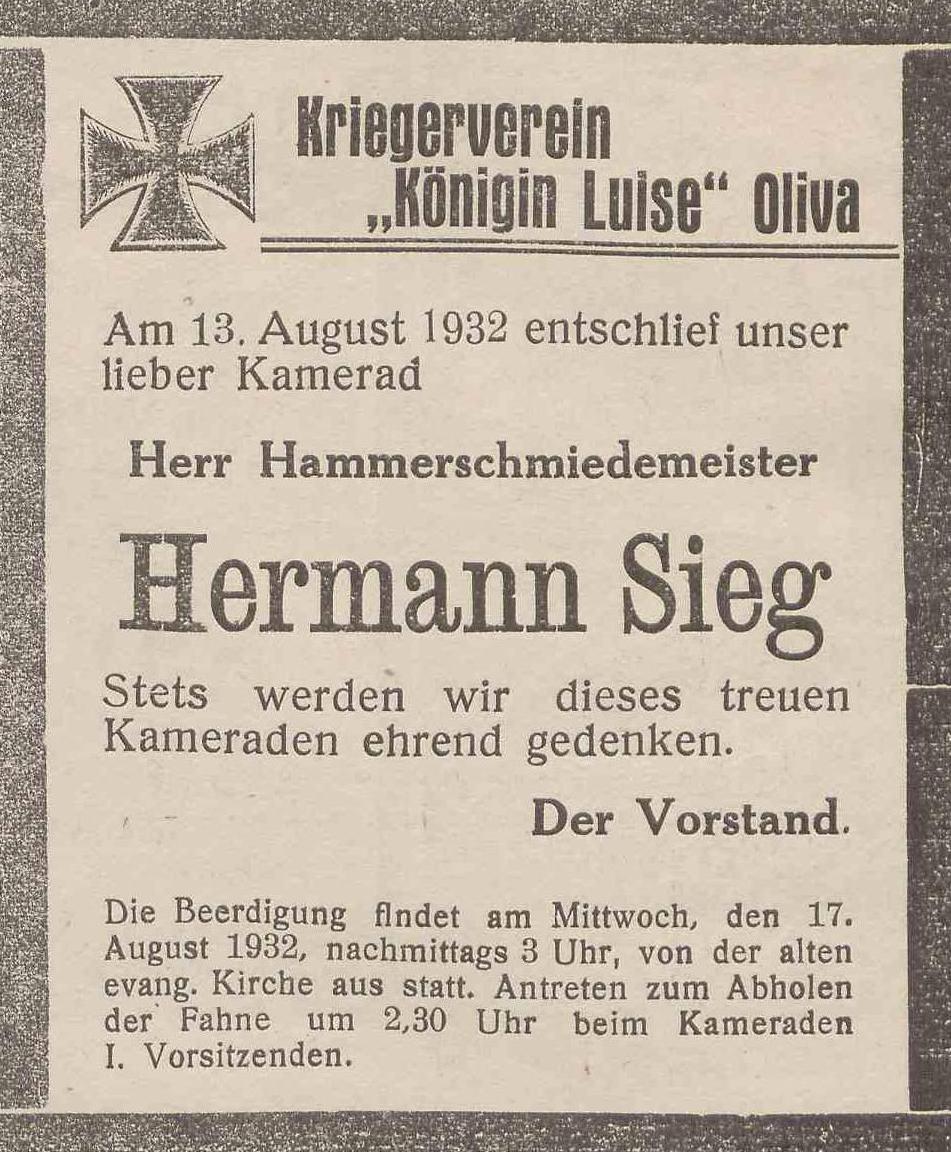 Hermann Sieg. Danzig-Olivaer Zeintung nr 191 z 16. 08. 1932 r.