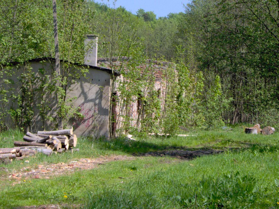 Zabudowania byłej fermy lisów. Zbliżenie. Fotografię wykonałem 26 maja 2005 roku.