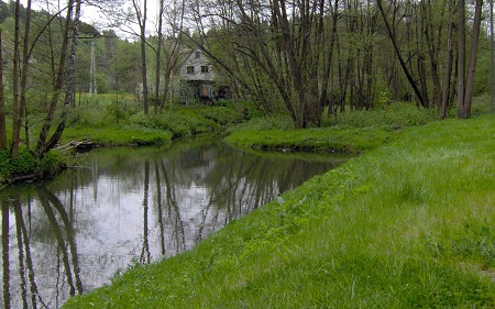 MŁYN XVI. Zachował się jedynie osuszony staw i częściowo zniszczona tama. W miejscu młyna wybudowano ostatnio tartak poruszany prądem elektrycznym.