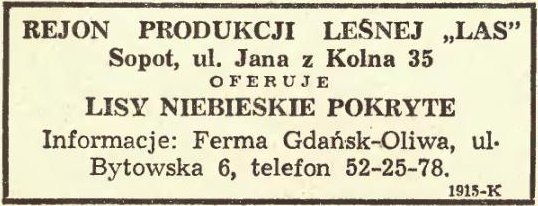 Onegdaj [przed 4 grudnia 1928 roku] nadszedł na tutejszym dworcu z Ameryki północnej nowy transport lisów południowych, tak zawnych "srebrnych", których zakupiła ferma doświadczalna do hodowli zwierząt na uzupełnienie zwierzostanu tamtejszego zoologu. 14 sztyk pięknych okazów zauważyliśmy w klatce. Są to już potomkowie trzech lisów, których ferma przed rokiem w Alasce i w jednej z tamtejszych ferm do rozpłodnienia zostawiła. Według udzielonych nam informacji, każdy z lisów posiada wartość około 3.000 gld, wobec czego nie jest wcale wykluczonem, że hodowla tych zwierząt opłaci się czasem dobrze.