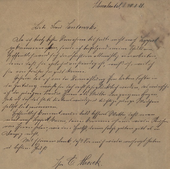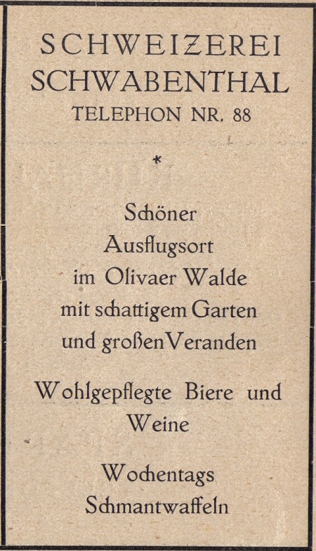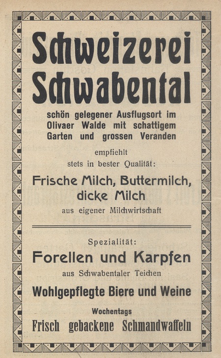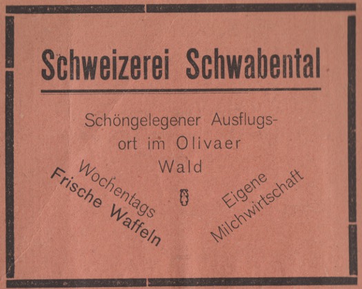 Dworek Schwabental. Pocztówka wysłana w 1914 roku. Internet: www.Allegro.pl.