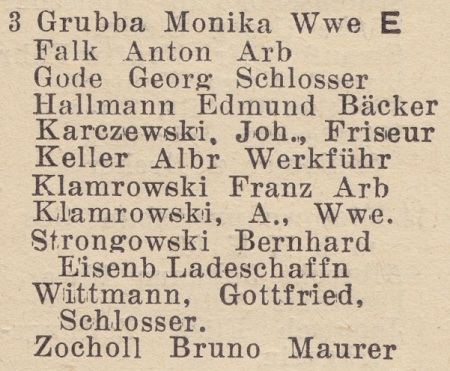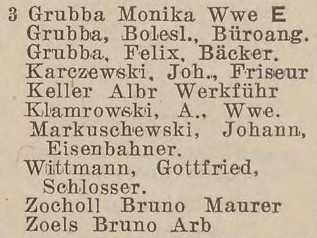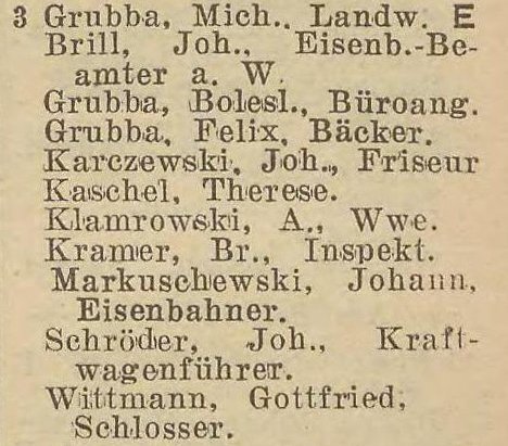 W 1901 roku letników przymowała Husen (Louise), Kirchenstraße 3 (Olivaer Nachrichten, ).