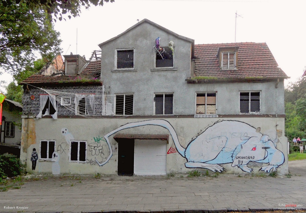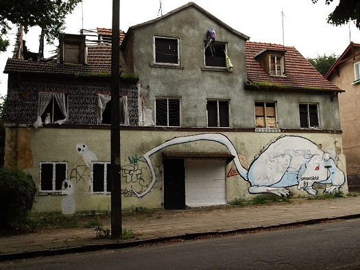 Pod koniec maja 2011 roku ośmiu studentów Akademii Sztuk Pięknych z Gdańska pracujących pod opieką wykładowcy Roberta Florczaka wykonało na budynku instalację artystyczną w ramach zaliczenia ćwiczeń z przedmiotu sztuka w przestrzeni publicznej. Celem było upiększenie niszczejącej fasady i nadanie jej walorów artystycznych. Były to jednak działania nielegalne i niekonsultowane z właścicielem budynku, którym jest Towarzystwo Ziemskie Sp. z o.o. z Osowy. W sierpniu 2011 r. na forum oliwskim "Galxy" oceniła te prace: "instalacja z piekła rodem, same satanistyczne symbole i to w jakim miejscu...... żenada, nie wiem kto na to pozwolił ale trzeba być idiotą żeby nie widzieć co jest grane", opisując po kolei znaczenie poszczególnych symboli. Egzorcysta Archidiecezji Gdańskiej ks. Andrzej Kowalczyk potwierdził ukryte znaczenie symboli satanistycznych dodając: "sztuka zawsze prowokuje, ale chyba nie zawsze powinna iść w tym kierunku".