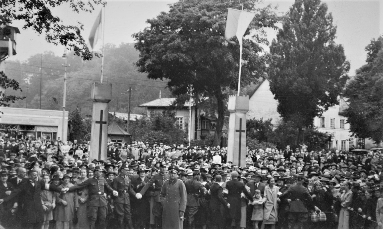 W głębi po prawej domy nr 4 i 3. Intronizacja Carla Marii Spletta 24. 08. 1938. Ze strony Gedanopedia.pl.
