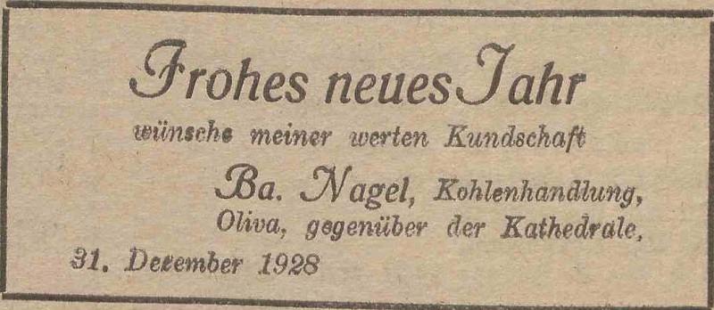 Ba. Nagel. Podziękowania noworoczne, Olivaer Zeitung nr 306 z 31. 12. 1928.