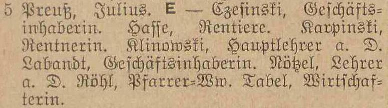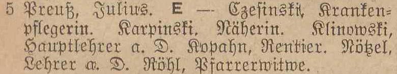 Preuß, Julius, Hausbel., Kirchenstraße 5.