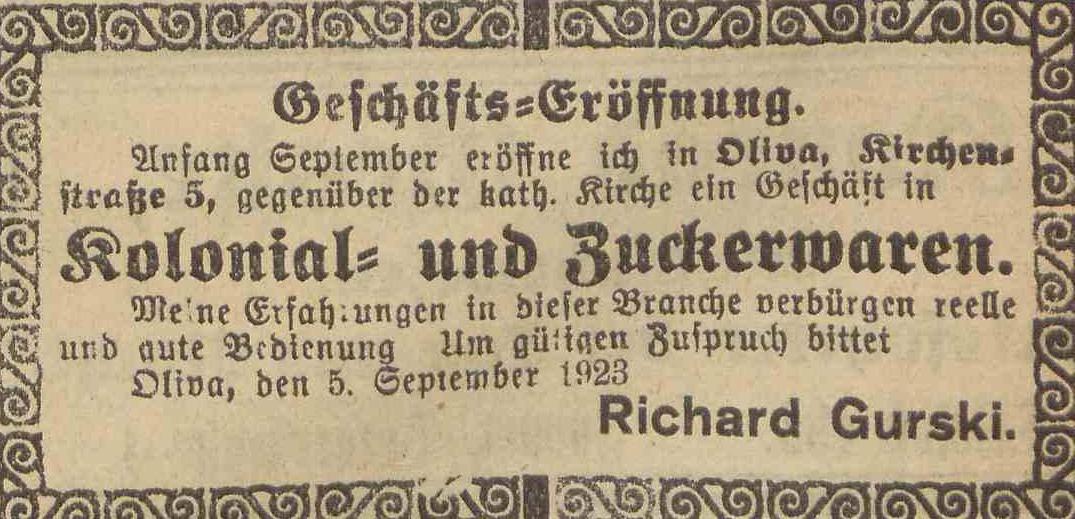 Richard Gurski. Olivaer Zeintung nr 206 z 05. 09. 1923 r.