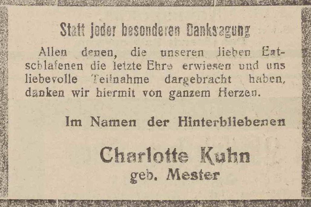 Charlotte Kuhn zd. Mester. Danzig-Olivaer Zeintung nr 4 z 06. 01. 1931 r.