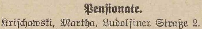Pensionate. Martha Krischowski. Książka adresowa gminy Oliwa z 1914 r. Zbiory Pomorskiej Biblioteki Cyfrowej.