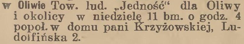 Od 1910 r. zebrana [Towarzystwa Ludowego ”Jedność"] odbywały się z kolei w pensjonacie Marty Krzyżewskiej, czy Kryszewskiej przy Ludolfinerstr. 2, (dziś Józefa Czyżewskiego). W domu tym mieszkał antoni Abraham, który po eksmisji towarzystwa do Thierfeldta przygarną biblioteczkę i zapewne sam wypożyczał książki.