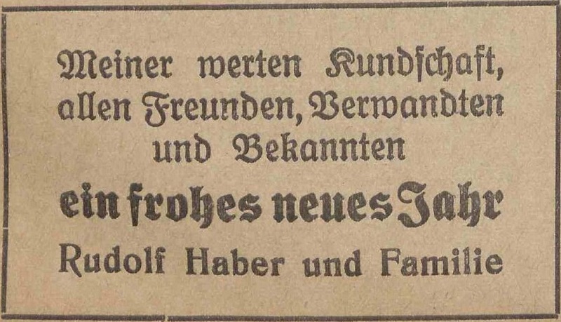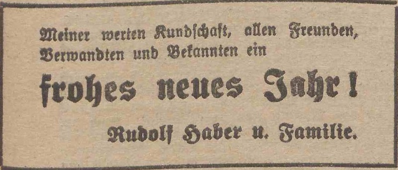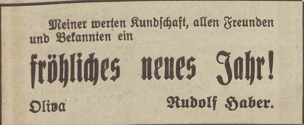 Rudolf Haber, Fleischermeister. Podziękowania noworoczne, Olivaer Zeitung nr 306 z 31. 12. 1928.
