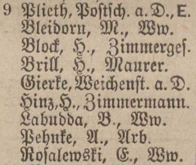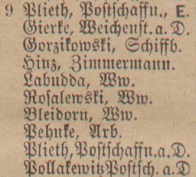 Właściciel T. Plieth, listonosz. Książka adresowa z 1899 r. Przekazała Grażyna Niemyjska. Zbiory PBC.