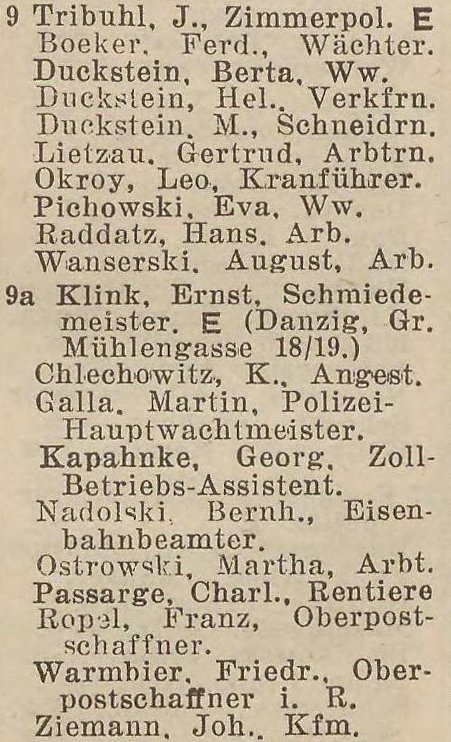 Tribuhl. Klink. Książka adresowa gminy Oliwa z 1925 roku. Zbiory Pomorskiej Biblioteki Cyfrowej.