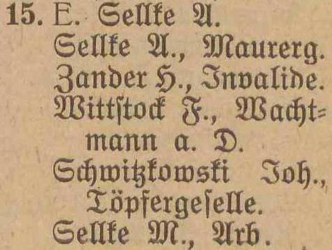 Sellke. Haber. Książka adresowa gminy Oliwa z 1916 roku. Zbiory Mirosława Piskorskiego.