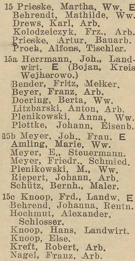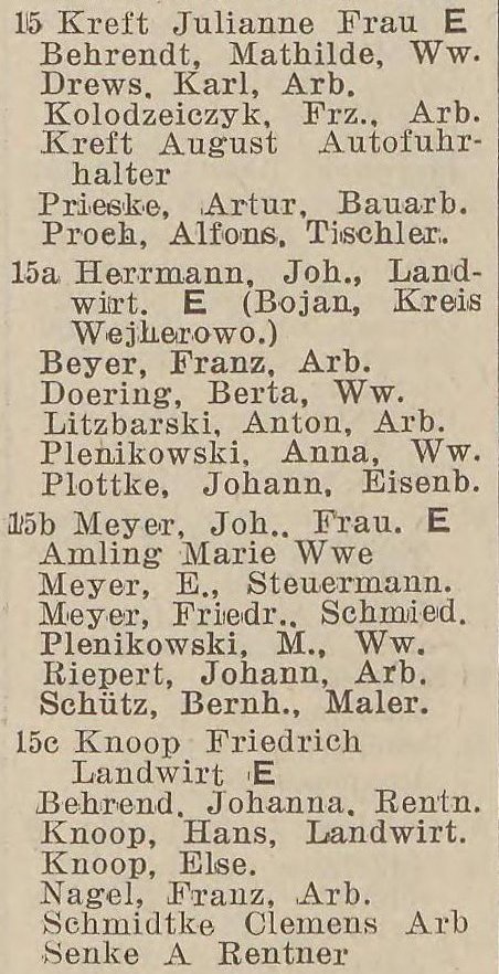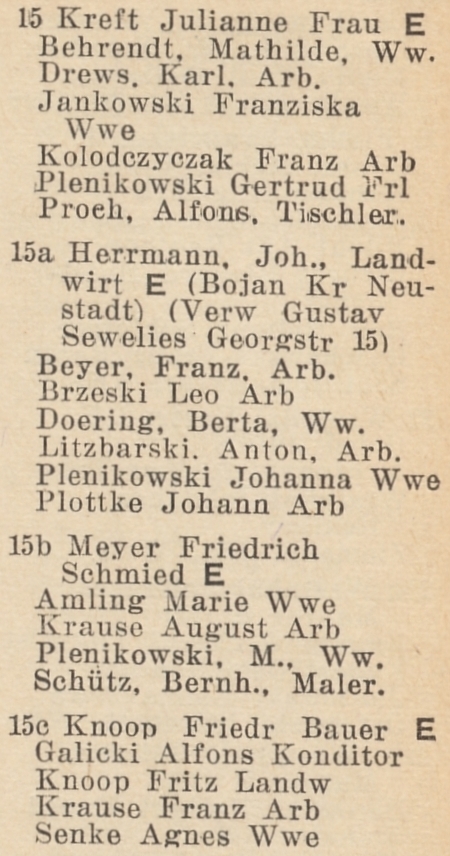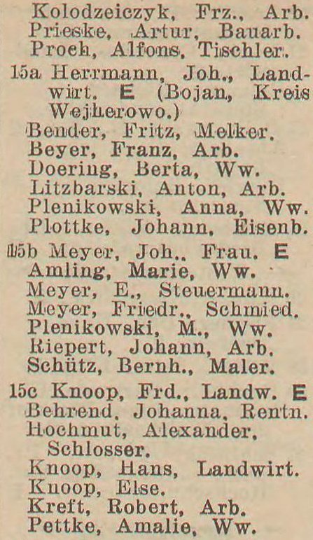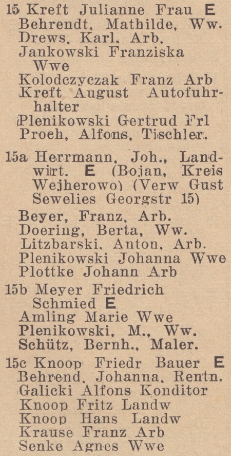 Julianne Kreft. Joh. Herrmann. Fredrich Meyer. Friedrich Knoop. Książka adresowa z 1939 roku. Zbiory Krzysztofa Gryndera.