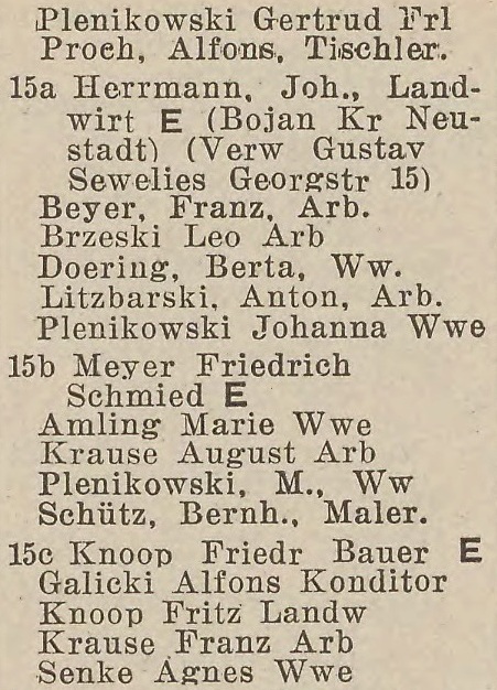 Julianne Kreft. Joh. Herrmann. Fredrich Meyer. Friedrich Knoop. Książka adresowa z 1937-1938 roku. Zbiory Piotra Mazurka.