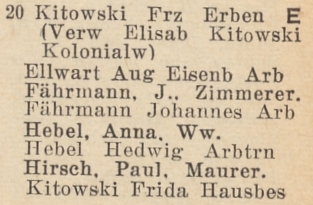 Adres: Ludolfiner Straße 20. Jan Fährmann (ur. 1868, zm. 21.10.1941 - wypadek samochodowy). Źródło: , 10.1941 poz. 94.