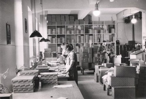 ![]() 4. Sala, w której rozsypywany jest proszek budyniowy. 5. Sala rozsypywania cukru waniljowego. 6. Sala magazynowa w własnej fabryce tektury.