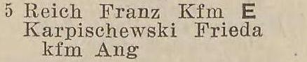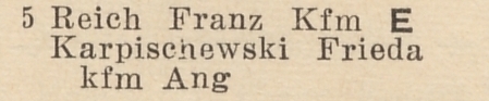 Franz Reich. Książka adresowa z 1939 roku. Zbiory Krzysztofa Gryndera.