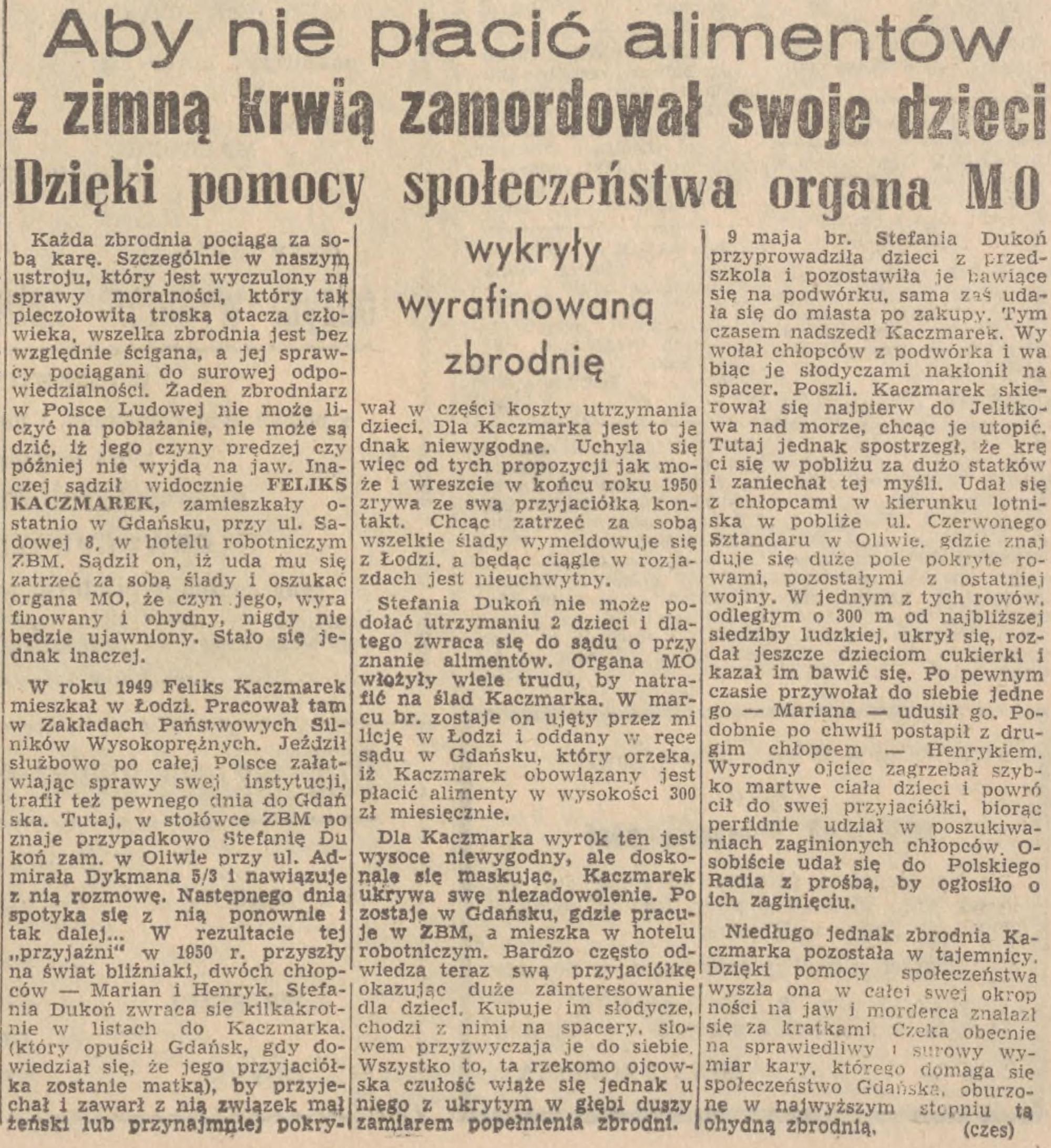 Feliks Kaczmarek. Dziennik Bałtycki z 18. maja 1955 roku. Zbiory Bałtyckiej Biblioteki Cyfrowej.