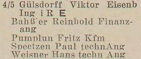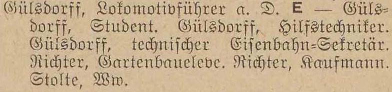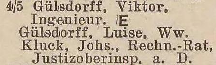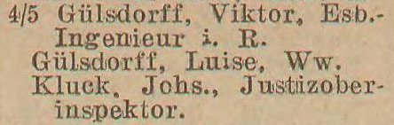 Gülsdorf, Viktor, sekretarz kolejowy w stanie spoczynku (techn. Eisenbahnsekretär a. D.).