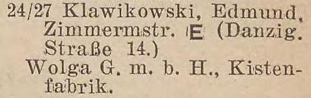 Edmund Klawikowski. Książka adresowa z 1935 roku. Zbiory Pomorskiej Biblioteki Cyfrowej.