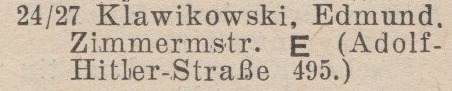 Edmund Klawikowski. Książka adresowa z 1940-1941 roku. Zbiory TPG Strefa Historyczna WMG.