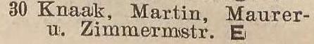 Martin Knaak. Książka adresowa Oliwy z 1916 roku. Zbiory Mirosława Piskorskiego.