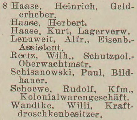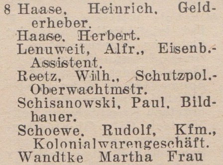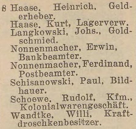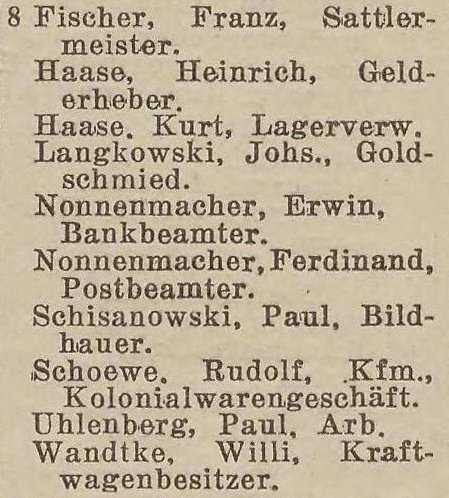 W latach 1929-1939 właścicielem budynków nr 1-2 oraz 8-11 (1942) był Wilhelm Werner.