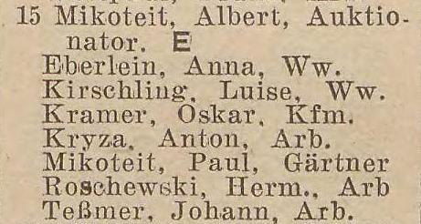 Arbert Mikoteit. Książka adresowa z 1926 roku. Ze strony wiki-de.genealogy.net.