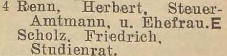 Herbert Renn. Książka adresowa z 1926 roku. Ze strony: wiki-de.genealogy.net..