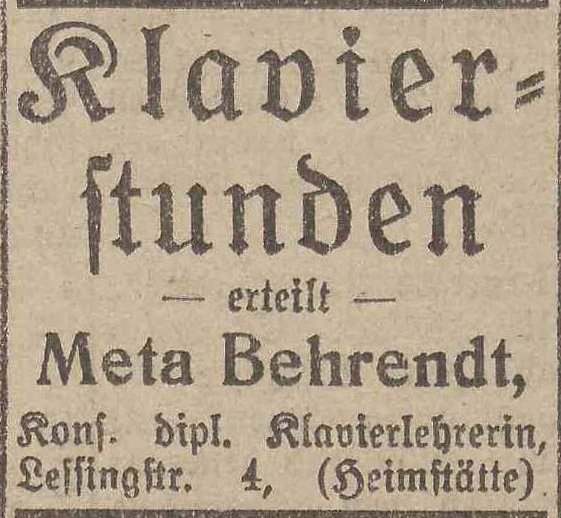 Meta Behrendt. Olivaer Zeintung nr 274 z 23. 11. 1920 r.
