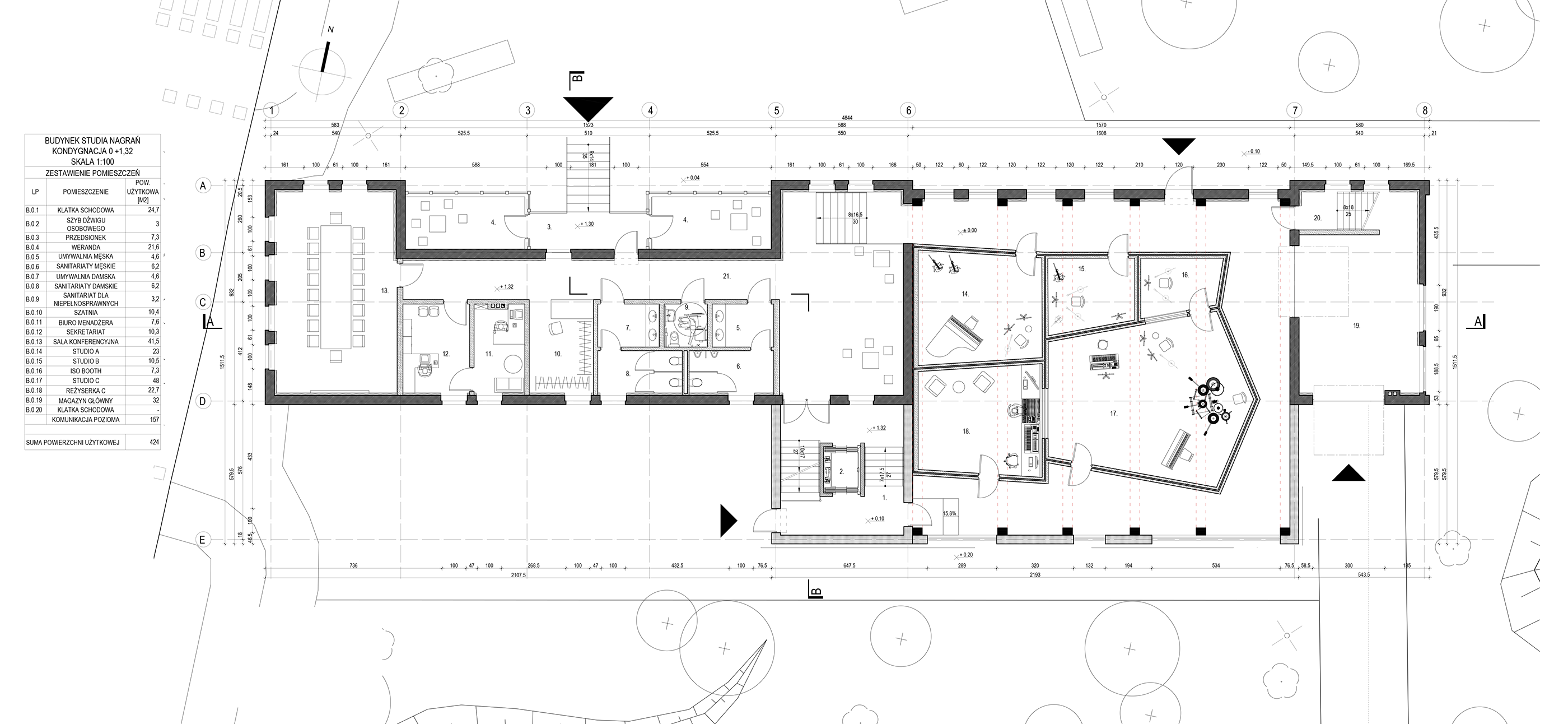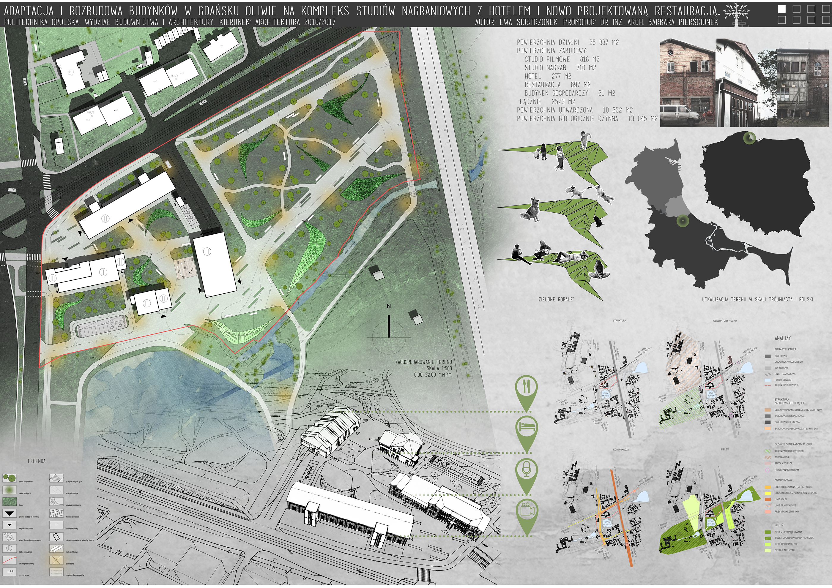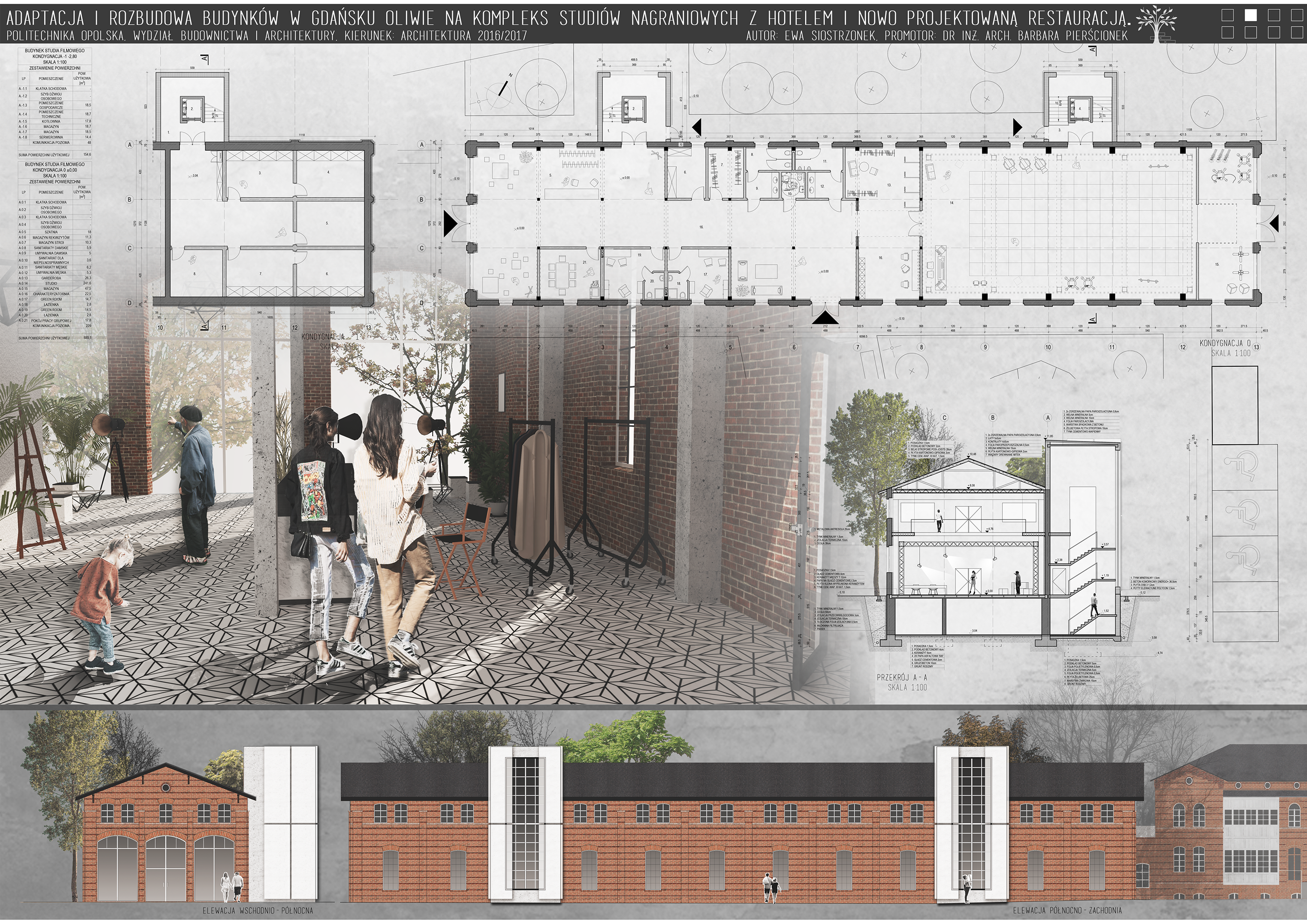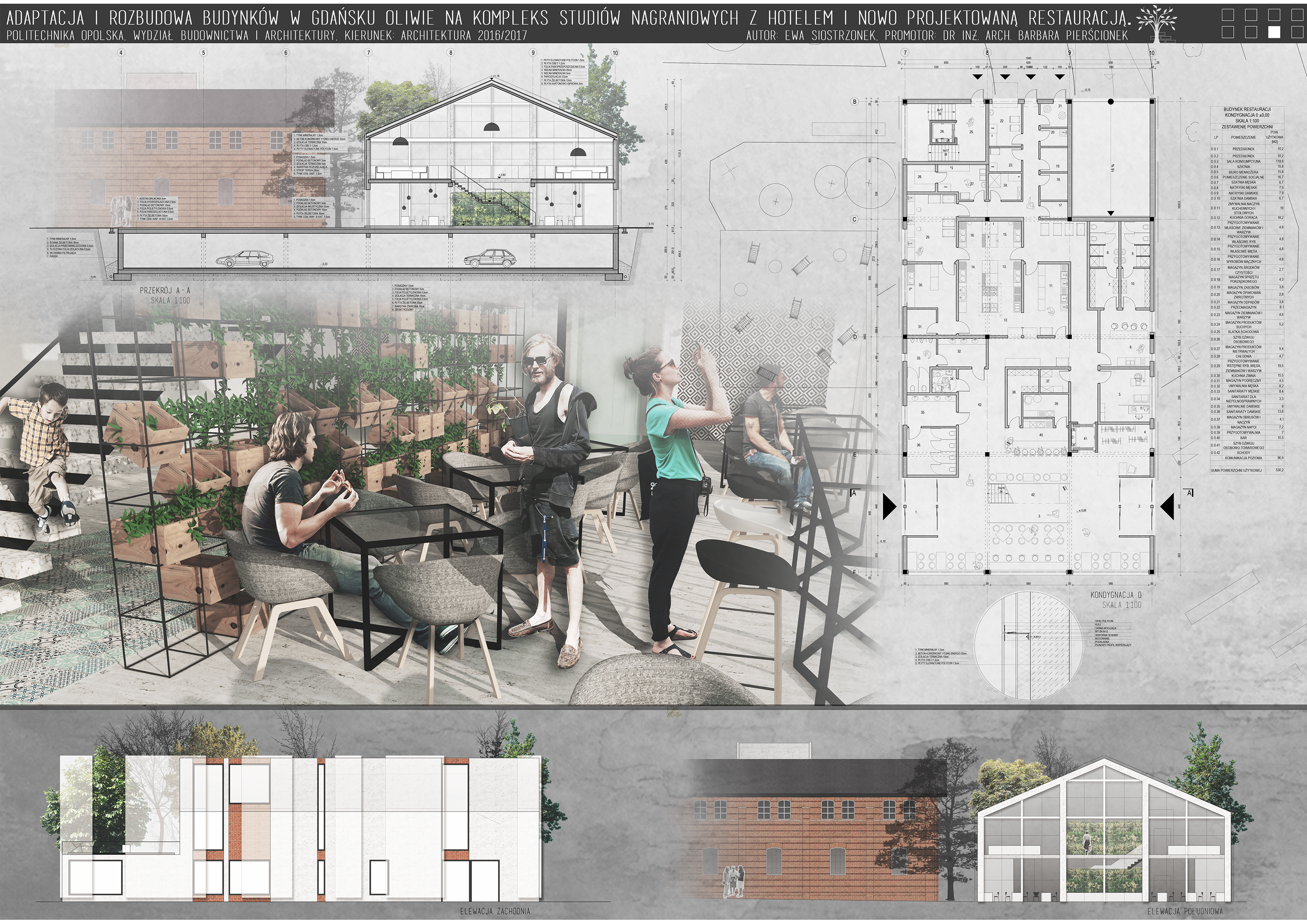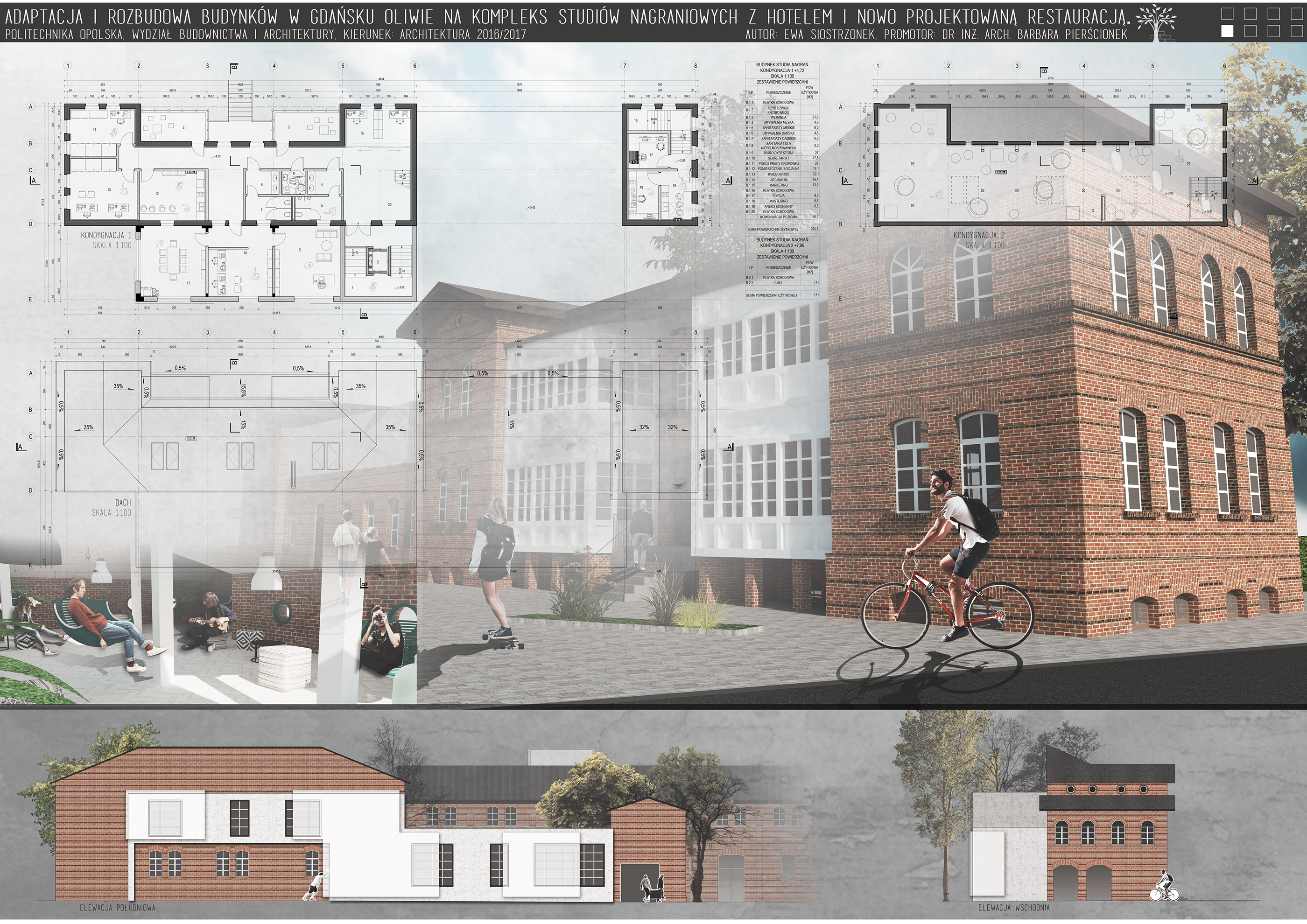Siostrzonek E., "Adaptacja i rozbudowa budynków w Gdańsku Oliwie na kompleks studiów nagraniowych z hotelem i nowo projektowaną restauracją", Opole 2017: