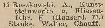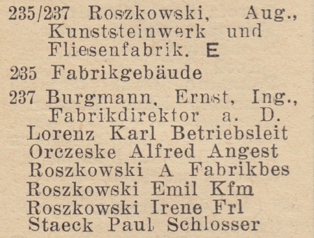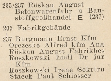August Roszkowski. Książka adresowa z 1933 roku. Zbiory Pomorskiej Biblioteki Cyfrowej.