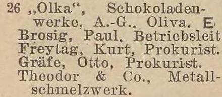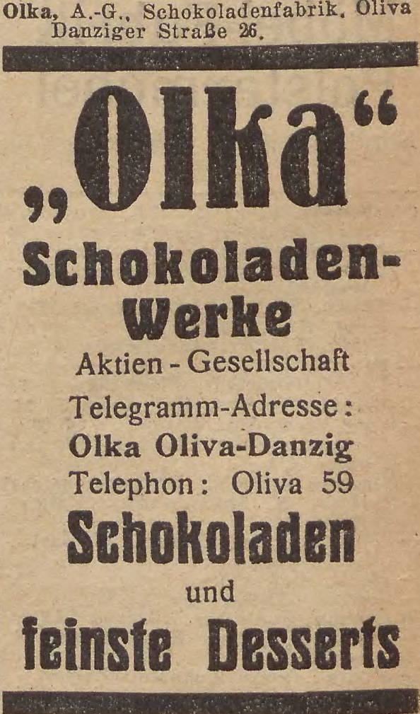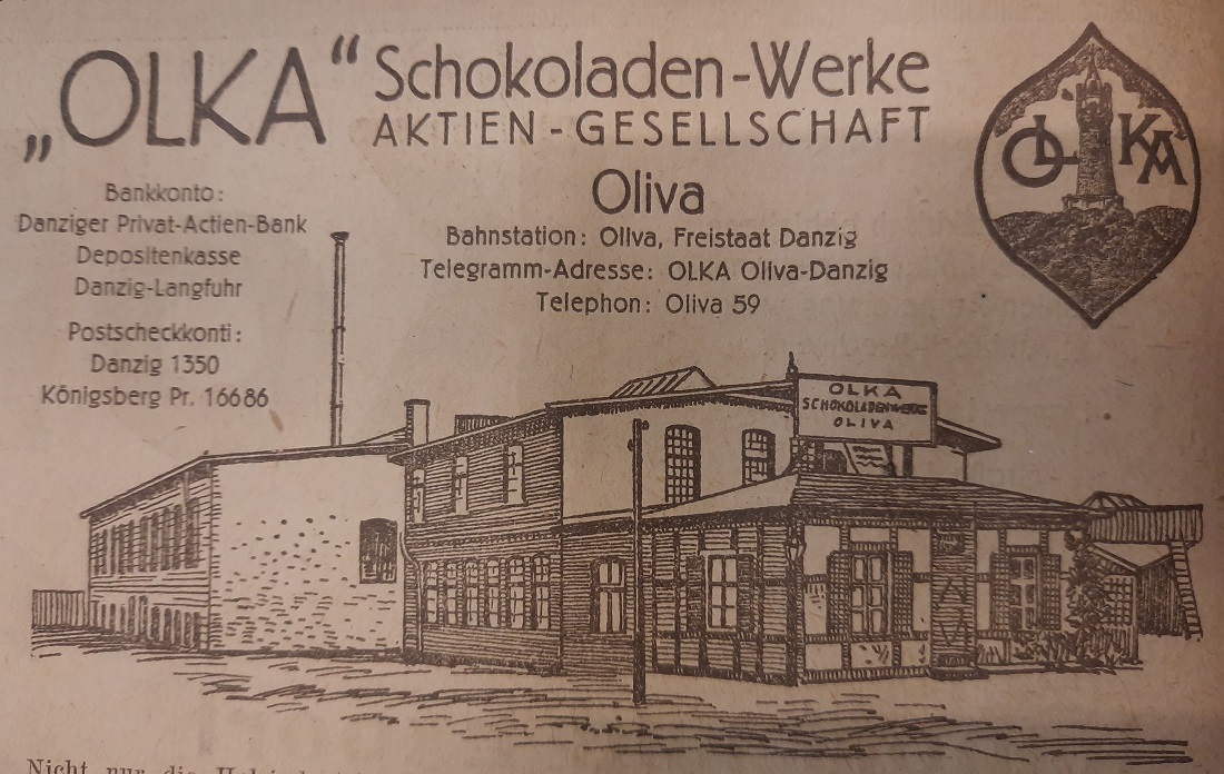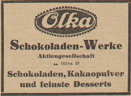 Olka. Schokoladenwerke. Książka adresowa z 1931 roku. Internet: Pomorska Biblioteka Cyfrowa.