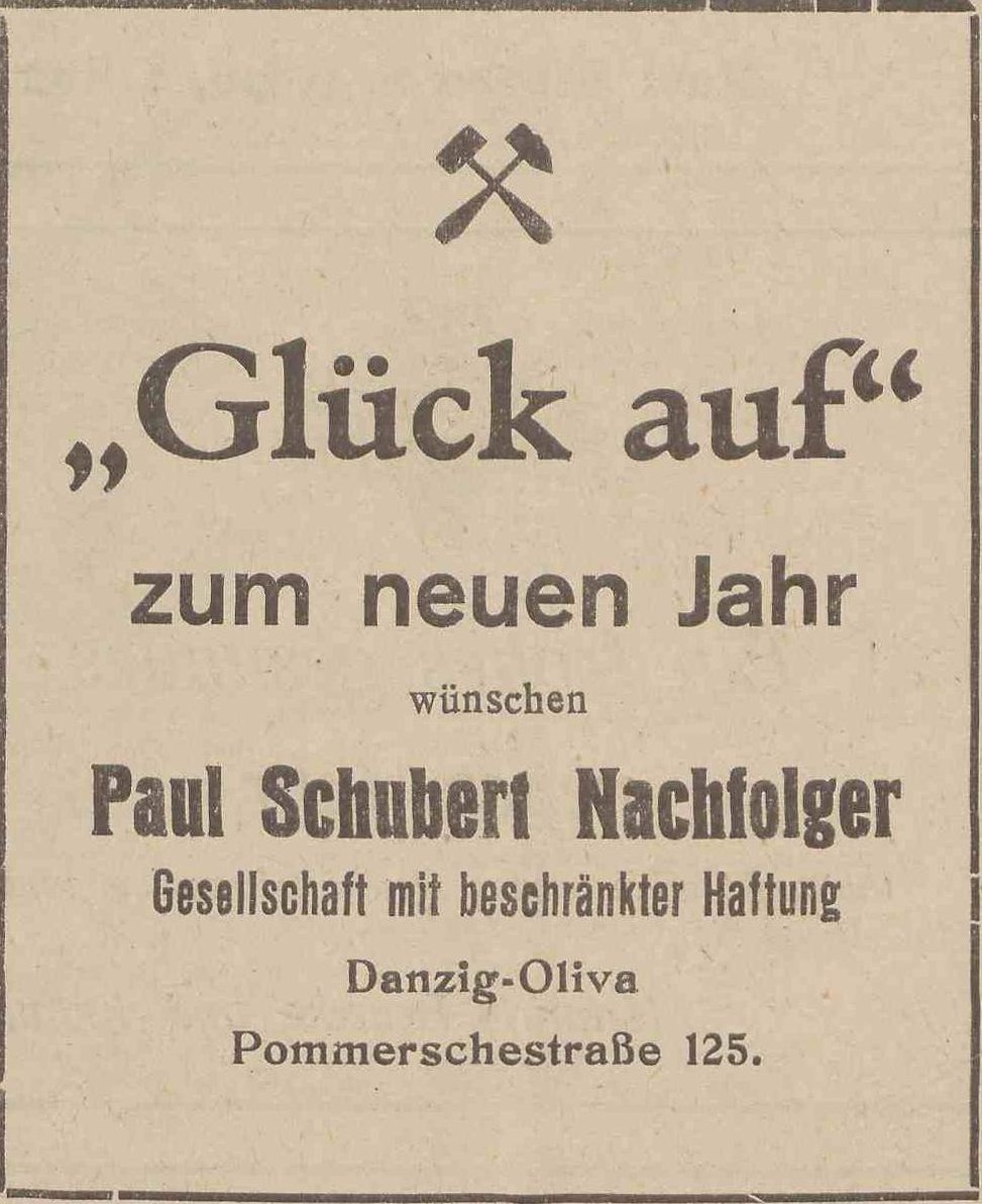 Paul Schubert. Podziękowania noworoczne, Danzig-Olivaer Zeitung nr 305 z 31. 12. 1932.