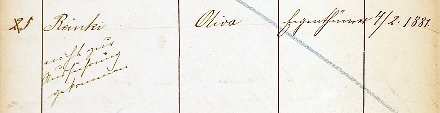 Reinke. Baukonholle Oliva IXX. Wpis z 04. 02. 1881. Przekazała Grażyna Niemyjska.