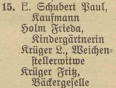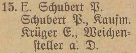 Schubert. Książka adresowa gminy Oliwa z 1916 roku. Zbiory Mirosława Piskorskiego.