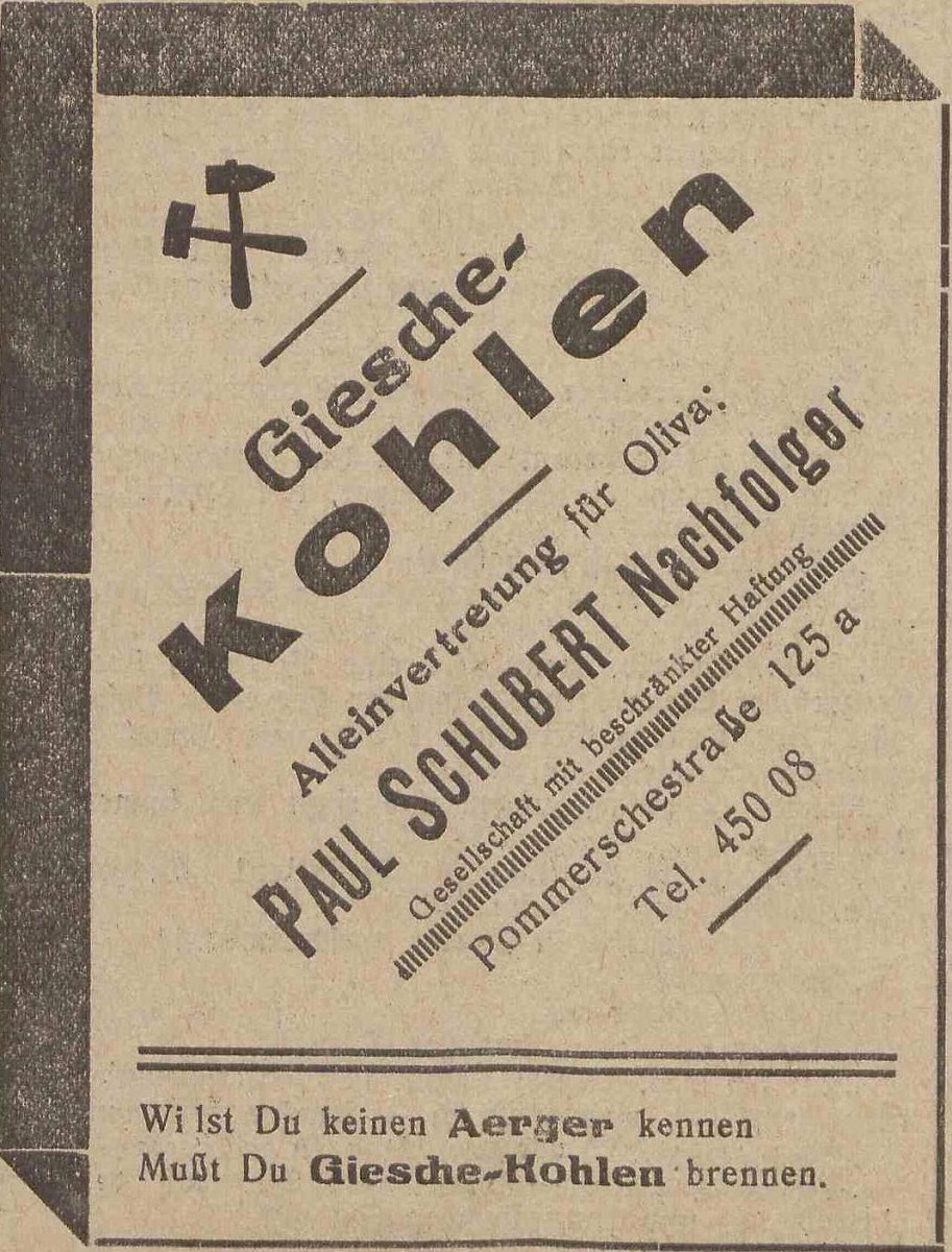 Paul Schubert. Auguste Sellke. Olivaer Zeintung nr 136 z 14. 06. 1920 r.