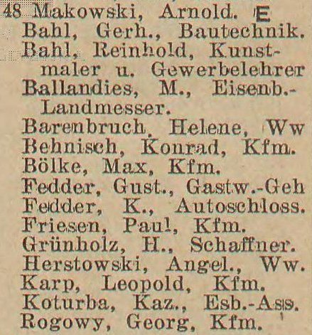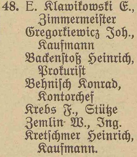Klawikowski. Książka adresowa gminy Oliwa z 1916 roku. Zbiory Mirosława Piskorskiego.