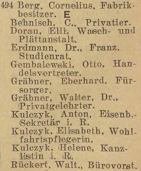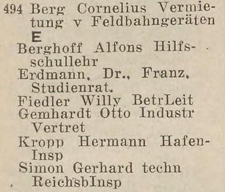 Otto Gembalewski. Cornelius Berg. Książka telefoniczna z 1937 roku. Zbiory TPG Strefa Historyczna WMG.
