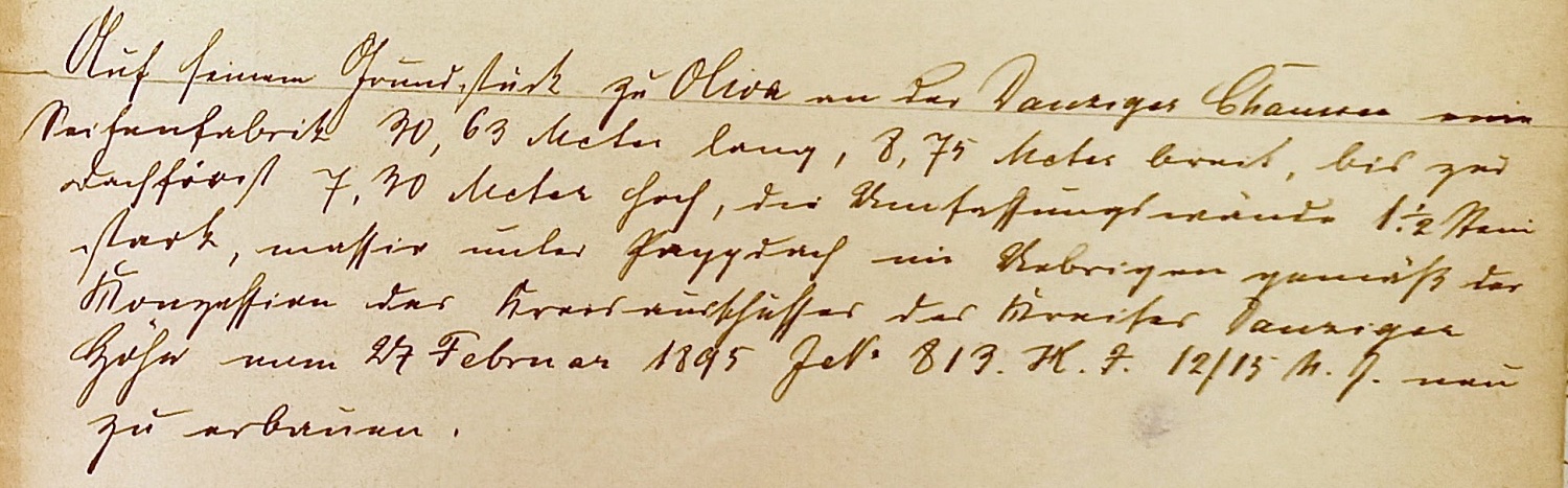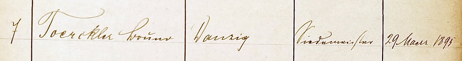 Bruno Toeckler. Baukonholle Oliva IXX. Wpis z 29. 03. 1895. Przekazała Grażyna Niemyjska.