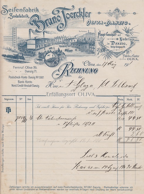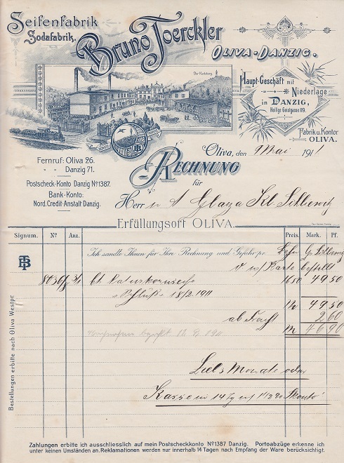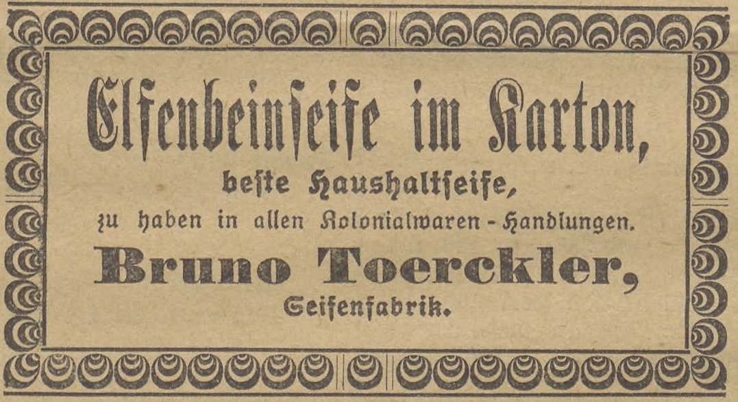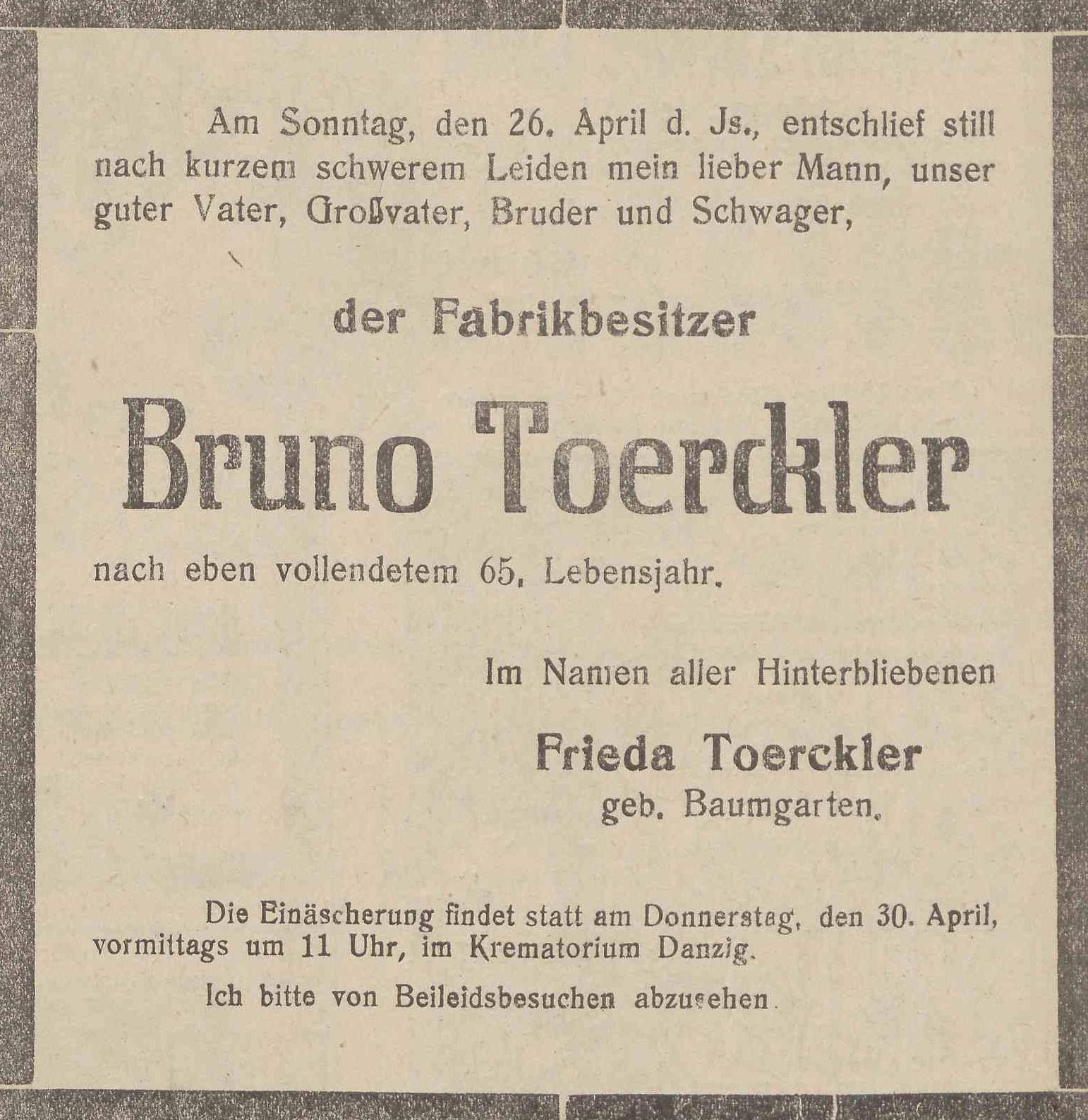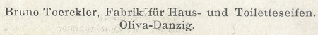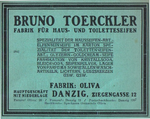 Bruno Toerckler, właściciel fabryki w Oliwie, wywodzi się ze starej gdańskiej rodziny, która przybyła do Gdańska w 1800 roku. Urodził się 25 kwietnia 1866 roku, wiedzę o produkcji mydła i praktykę zdobywał w Dreźnie, Miśni, Karlsruhe, Monachium, Cassel i Strasburgu (w Alzacji). Na przełomie 1894/1895 roku zbudował Toerckler fabrykę mydła w Oliwie, która istnieje do dziś, choć była rozbudowywana i modernizowana.