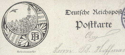 Znak firmowy BT (Bruno Toerckler) na pocztówcze wysłanej w 1904 roku. Zbiory Krzysztofa Gryndera.