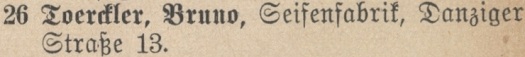 Bruno Toerckler. Książka adresowa z 1926 roku. Zbiory Pomorskiej Biblioteki Cyfrowej.