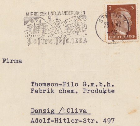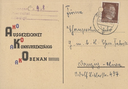 Fragment reklamowej karty pocztowej. Nadano 23. 01. 1942 roku. Zbiory Mirosława Piskorskiego.