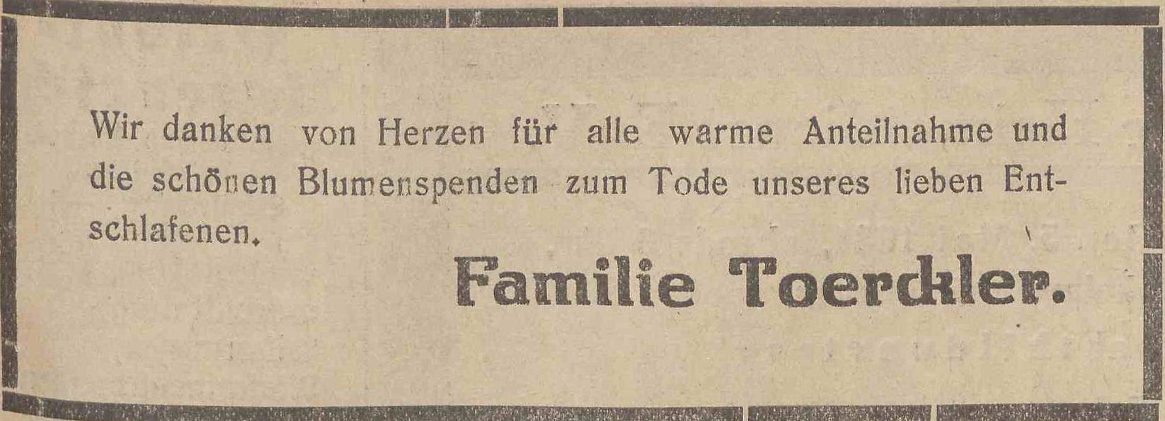 Familie Toerckler. Olivaer Zeintung nr 102 z 02. 05. 1931 r.