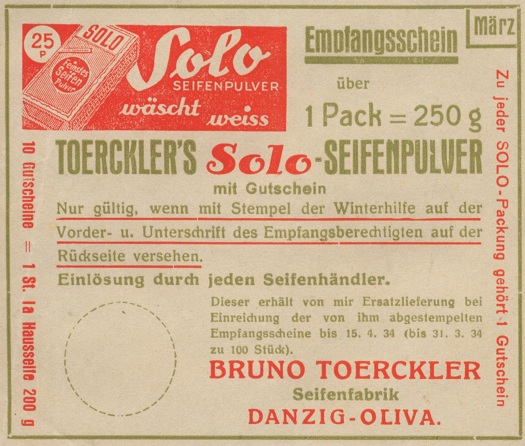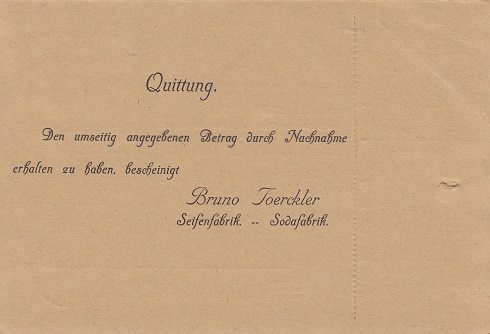 Toerckler's. Seifenfabrik. Kupon z lat 30 XX wieku. Zbiory Piotra Leżyńskiego.